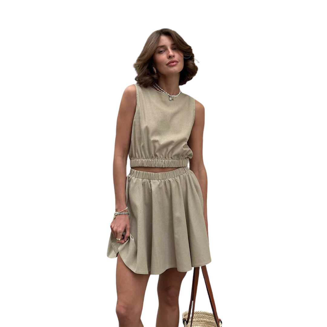 Two-Piece Linen Set Top and Skirt