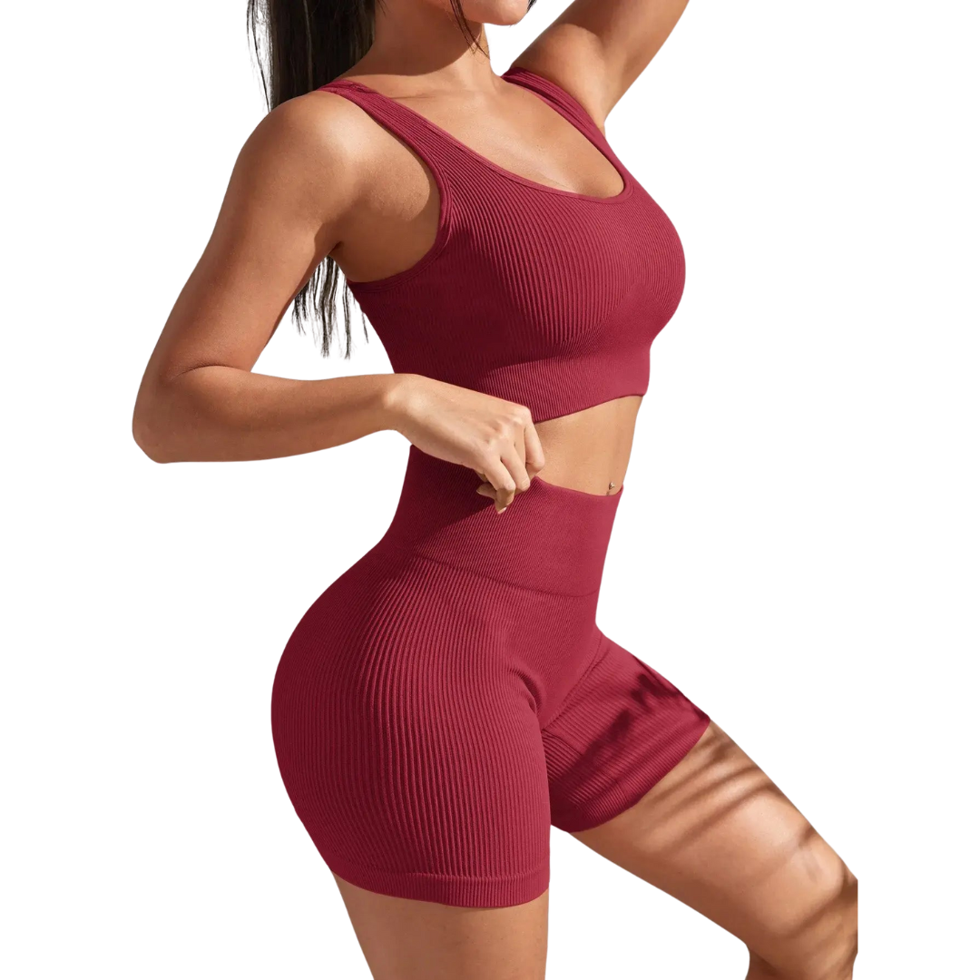 Ribbed Material: The ribbed material of this set not only provides a snug and flattering fit but also allows for flexibility and unrestricted movement during your workout.