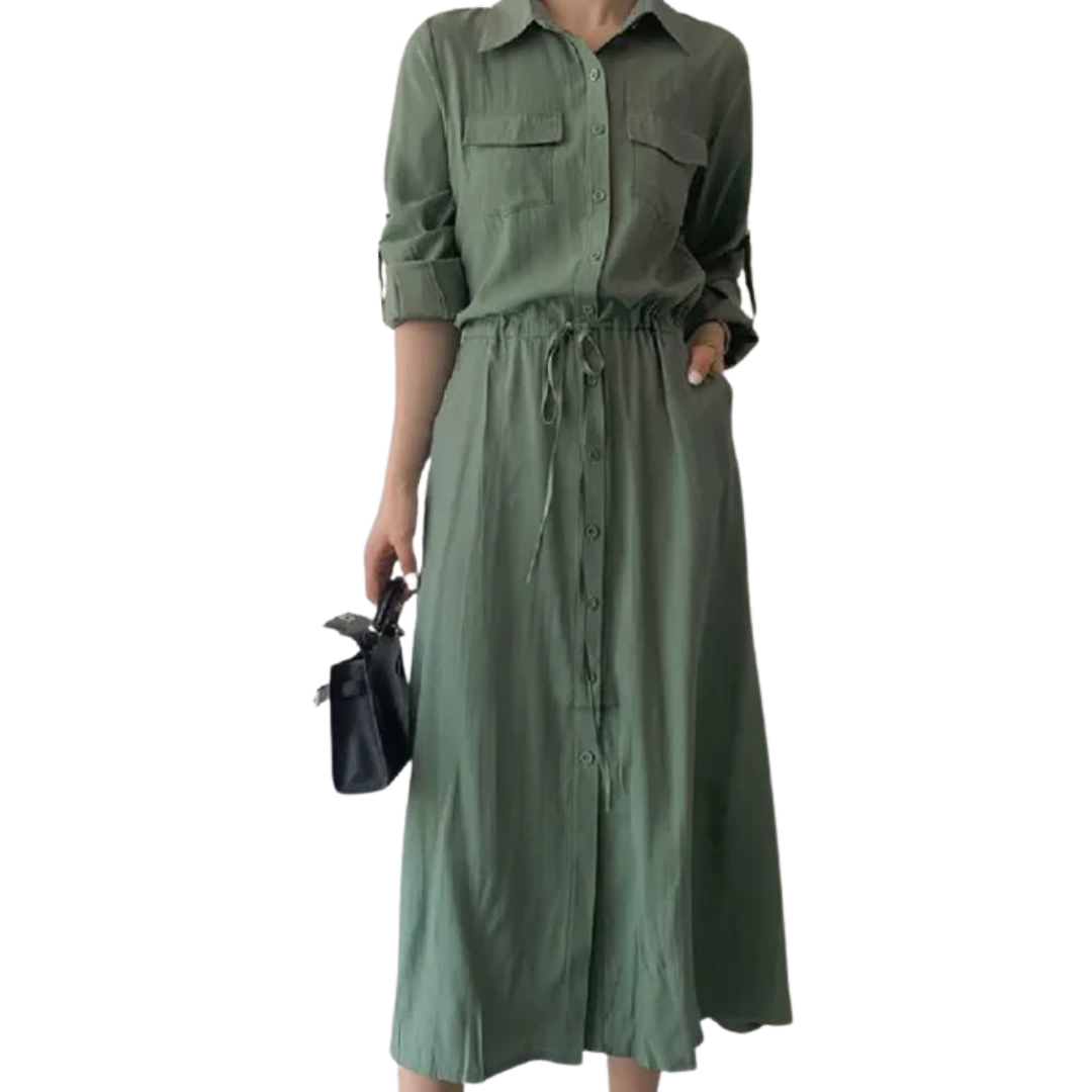 This polo dress is crafted from soft, breathable cotton, offering a perfect balance of comfort and understated elegance. The tailored collar and buttoned neckline lend a timeless appeal, while the relaxed silhouette ensures effortless wear from morning to evening.